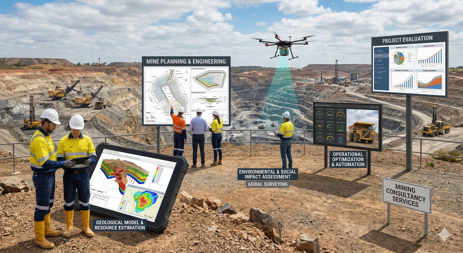 Complete mining consultancy services including mine planning and regulatory compliance.